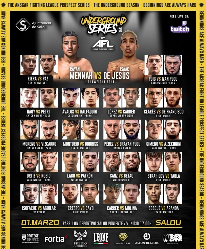 - Daniel Ortiz Sánchez vence a Aleix Rubio Ayuso vía Sumisión (Guillotina) Round 3 (1:00) (Amateur)