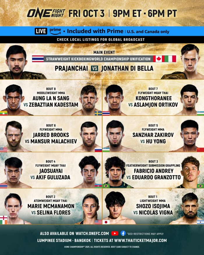 ONE Fight Night 36: Prajanchai vs Di Bella: Bangkok (3 octubre, 2025)