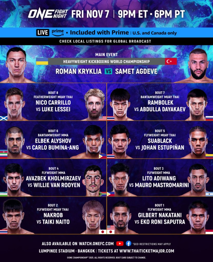 ONE Fight Night 37: Kryklia vs Agdeve: Bangkok (7 noviembre, 2025)