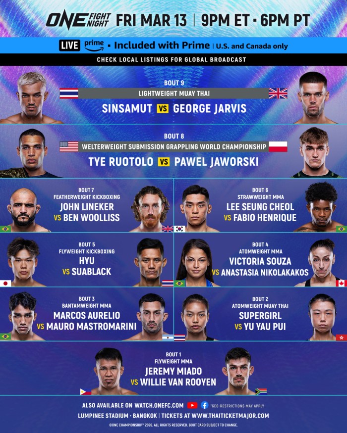 ONE Fight Night 41: Sinsamut vs Jarvis: Bangkok (13 marzo, 2026)